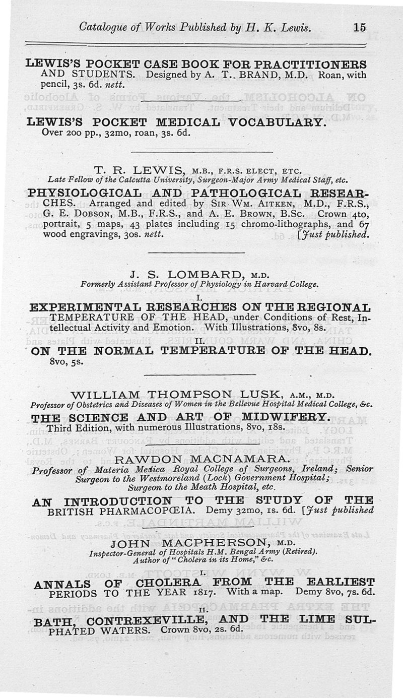 London, H.K. Lewis, 1889.