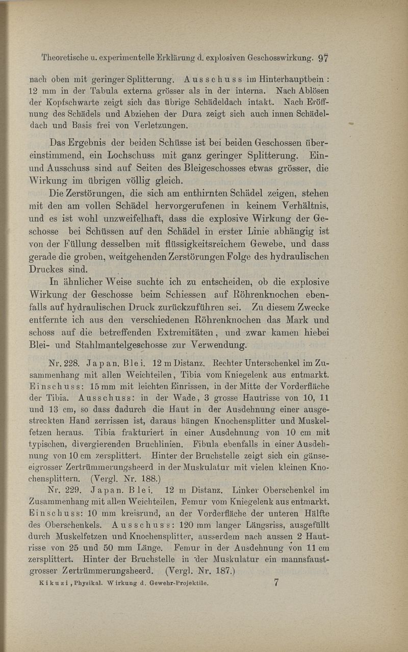 Untersuchungen über die physikalische Wirkung der Kleingewehr-Projektile, mit besonderer Berücksichtigung des kaiserlich-japanischen Ordonnazgewehrs, System Murata -- von Dr. Zuneshaburo Kikuzi