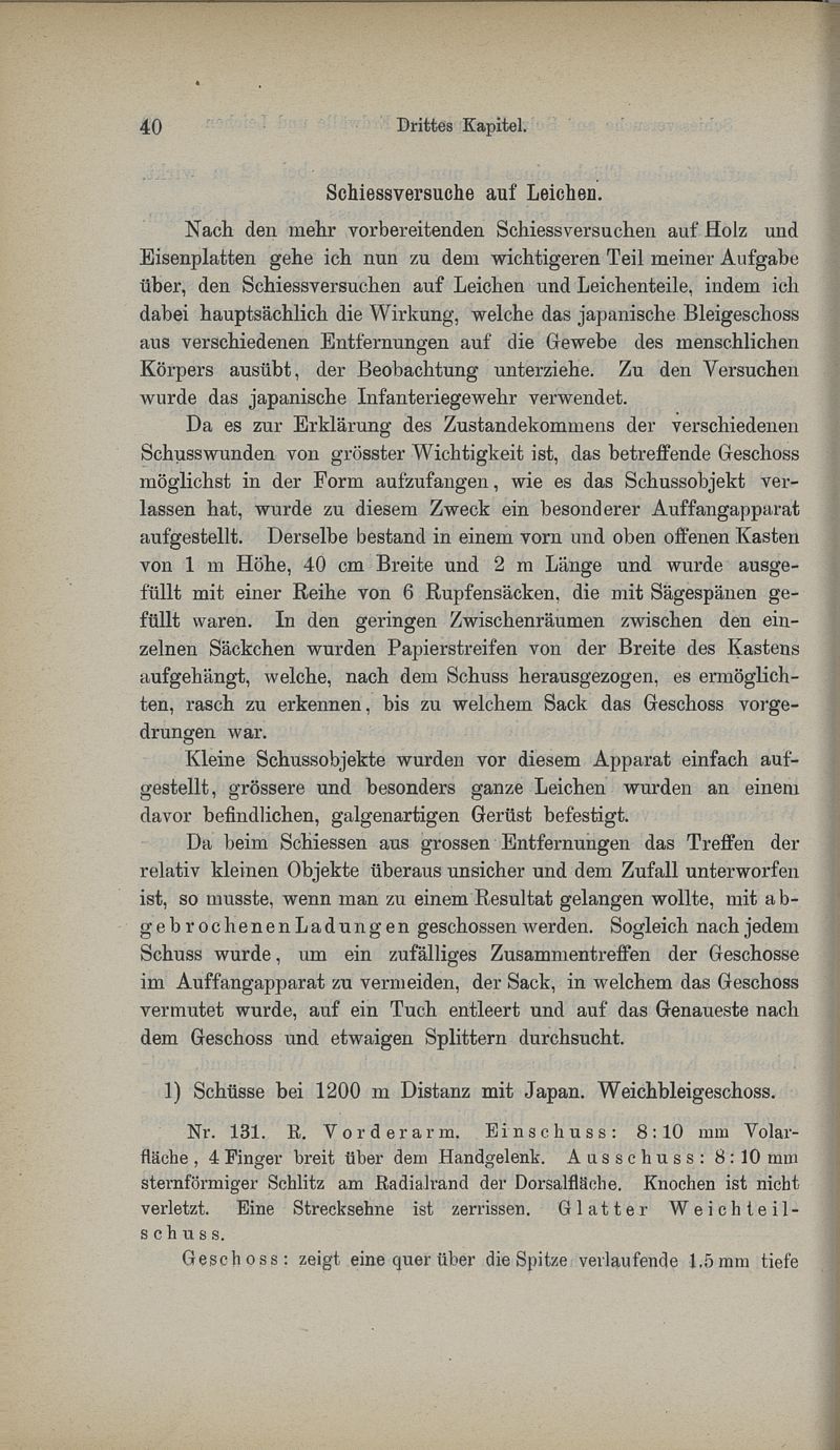 Untersuchungen über die physikalische Wirkung der Kleingewehr-Projektile, mit besonderer Berücksichtigung des kaiserlich-japanischen Ordonnazgewehrs, System Murata -- von Dr. Zuneshaburo Kikuzi