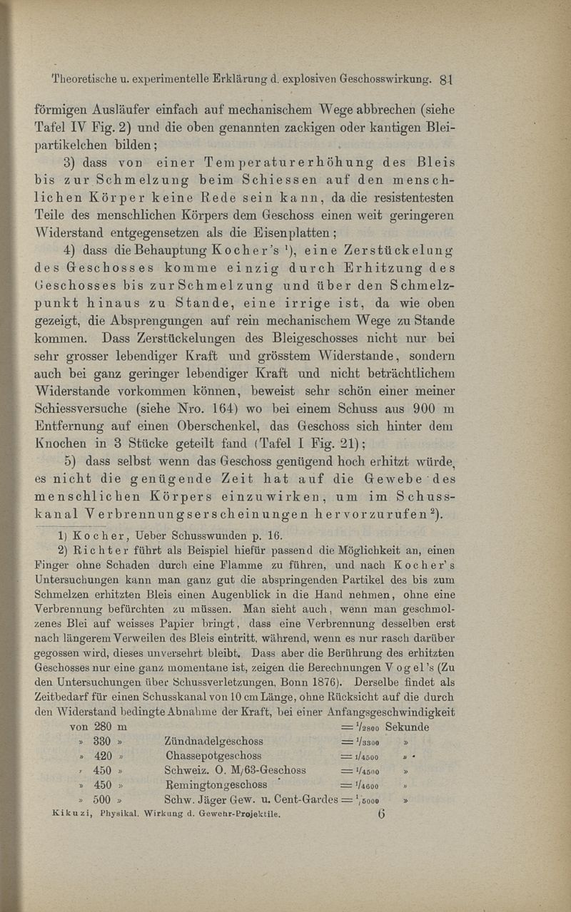 Untersuchungen über die physikalische Wirkung der Kleingewehr-Projektile, mit besonderer Berücksichtigung des kaiserlich-japanischen Ordonnazgewehrs, System Murata -- von Dr. Zuneshaburo Kikuzi
