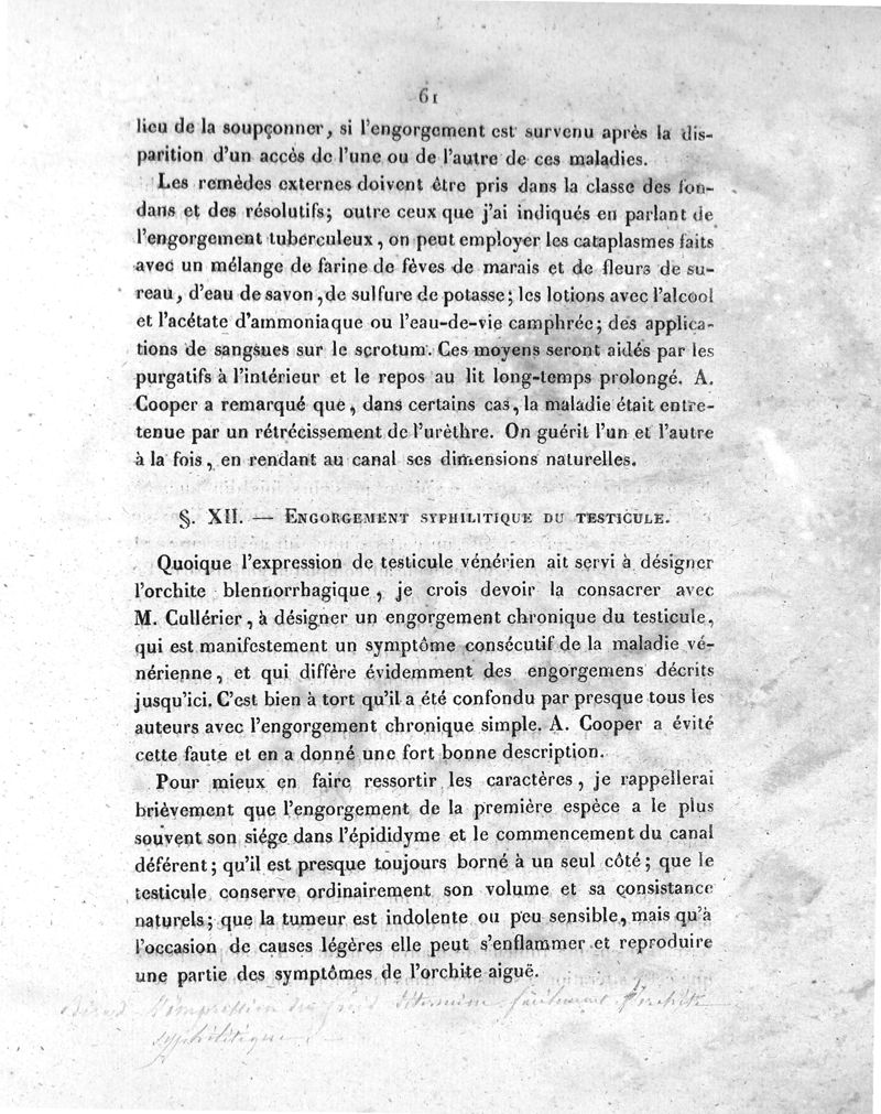 Des divers engorgements du testicule