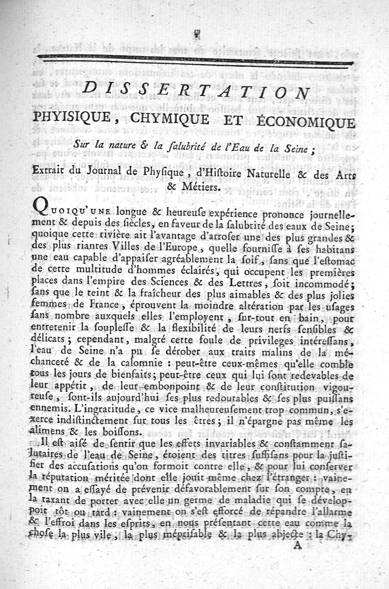 Dissertation physique chymique et économique sur la nature et la salubrité des eaux de la Seine