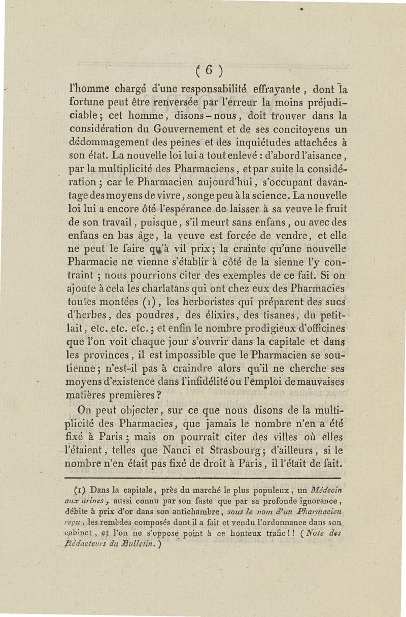 Pétition à son excellence le Comte de Montalivet Ministre de l'Intérieur. Mémoire pour les pharmaciens de Paris. Observations des rédacteurs du Bulletin de pharmacie