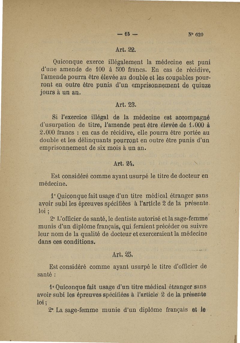 Projet de loi sur l'exercice de la médecine, présenté au nom de M. Carnot -- par M. Constans, M. Fallières, M. Léon Bourgeois, M. Ribot
