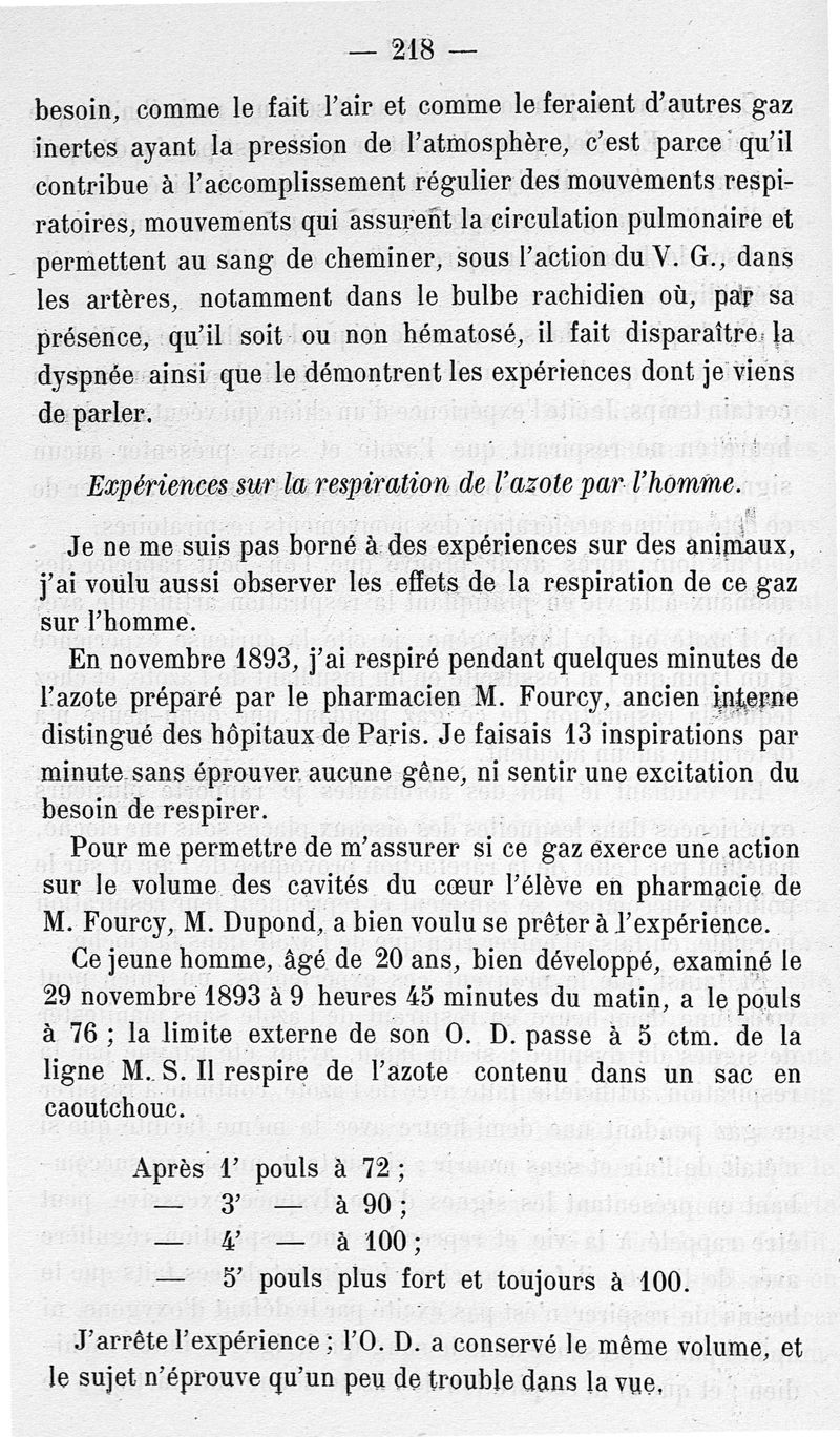 Recherches sur les lois de la circulation pulmonaire, sur la fonction hémodynamique de la respiration et l'asphyxie suivies d'une étude sur le mal de montagne et de ballon
