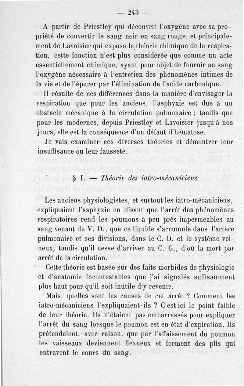 Recherches sur les lois de la circulation pulmonaire, sur la fonction hémodynamique de la respiration et l'asphyxie suivies d'une étude sur le mal de montagne et de ballon