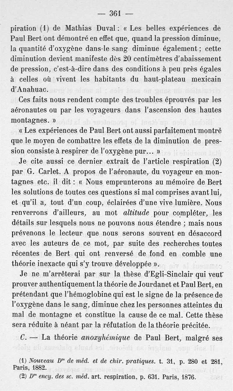 Recherches sur les lois de la circulation pulmonaire, sur la fonction hémodynamique de la respiration et l'asphyxie suivies d'une étude sur le mal de montagne et de ballon