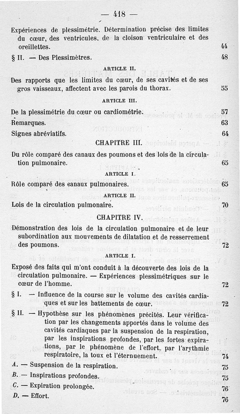 Recherches sur les lois de la circulation pulmonaire, sur la fonction hémodynamique de la respiration et l'asphyxie suivies d'une étude sur le mal de montagne et de ballon