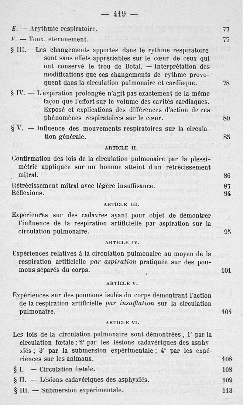 Recherches sur les lois de la circulation pulmonaire, sur la fonction hémodynamique de la respiration et l'asphyxie suivies d'une étude sur le mal de montagne et de ballon