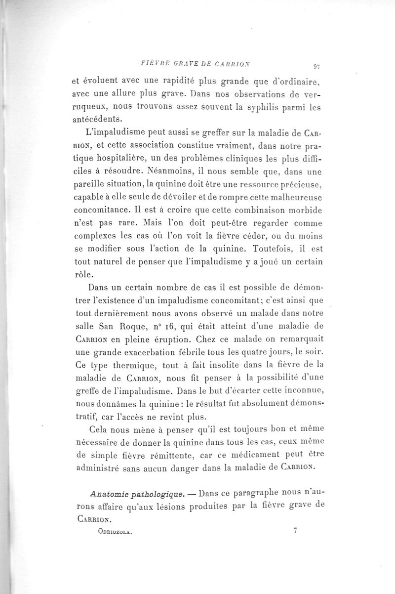 La Maladie de Carrion, ou la Verruga péruvienne