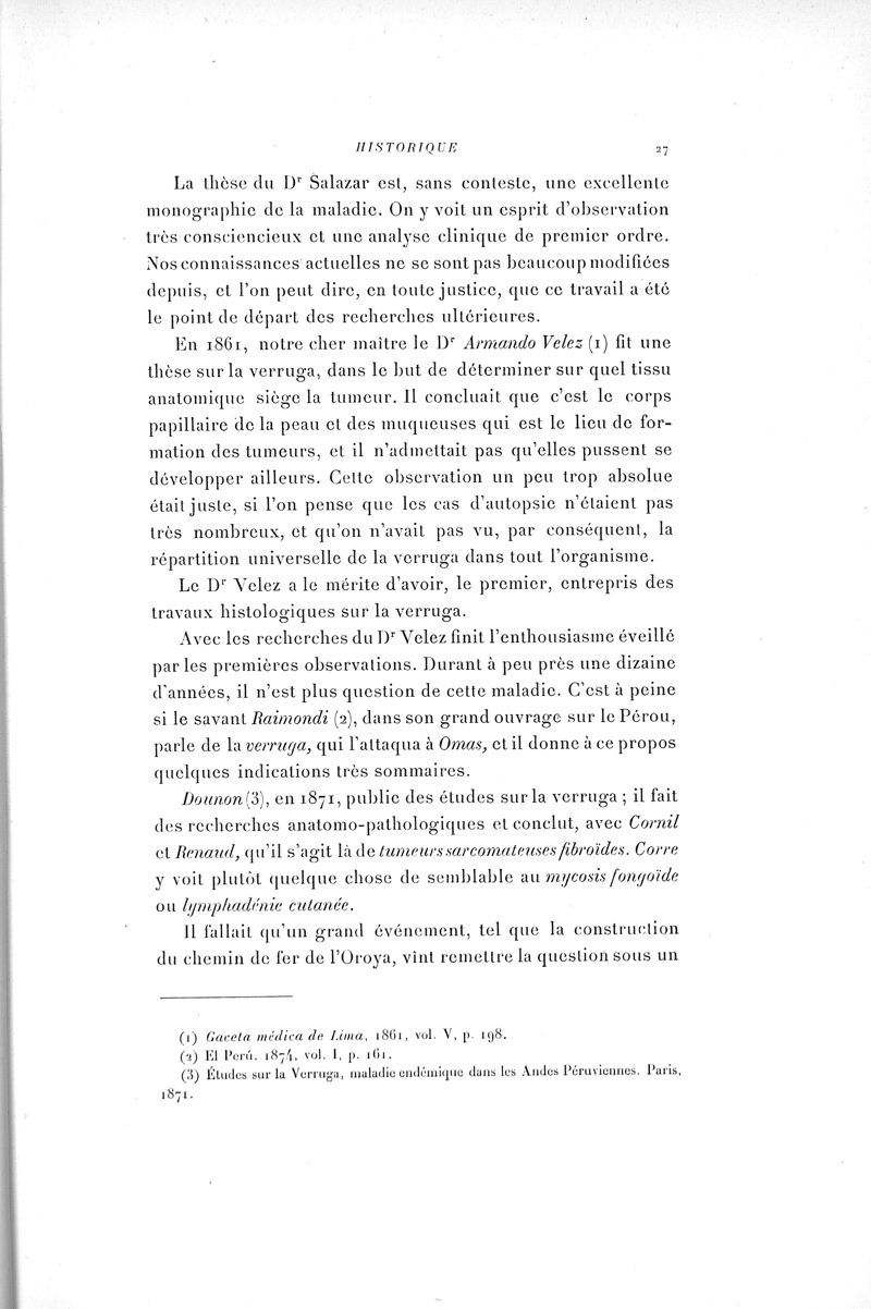 La Maladie de Carrion, ou la Verruga péruvienne
