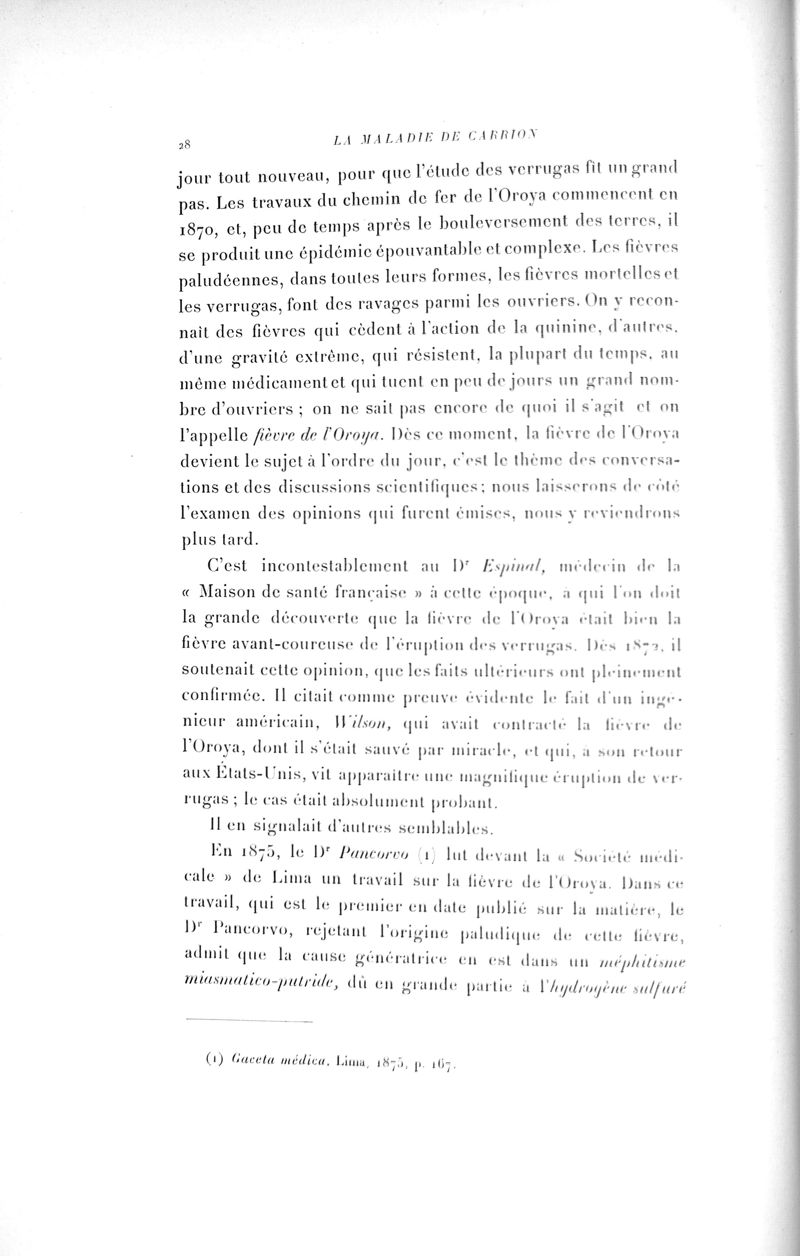 La Maladie de Carrion, ou la Verruga péruvienne