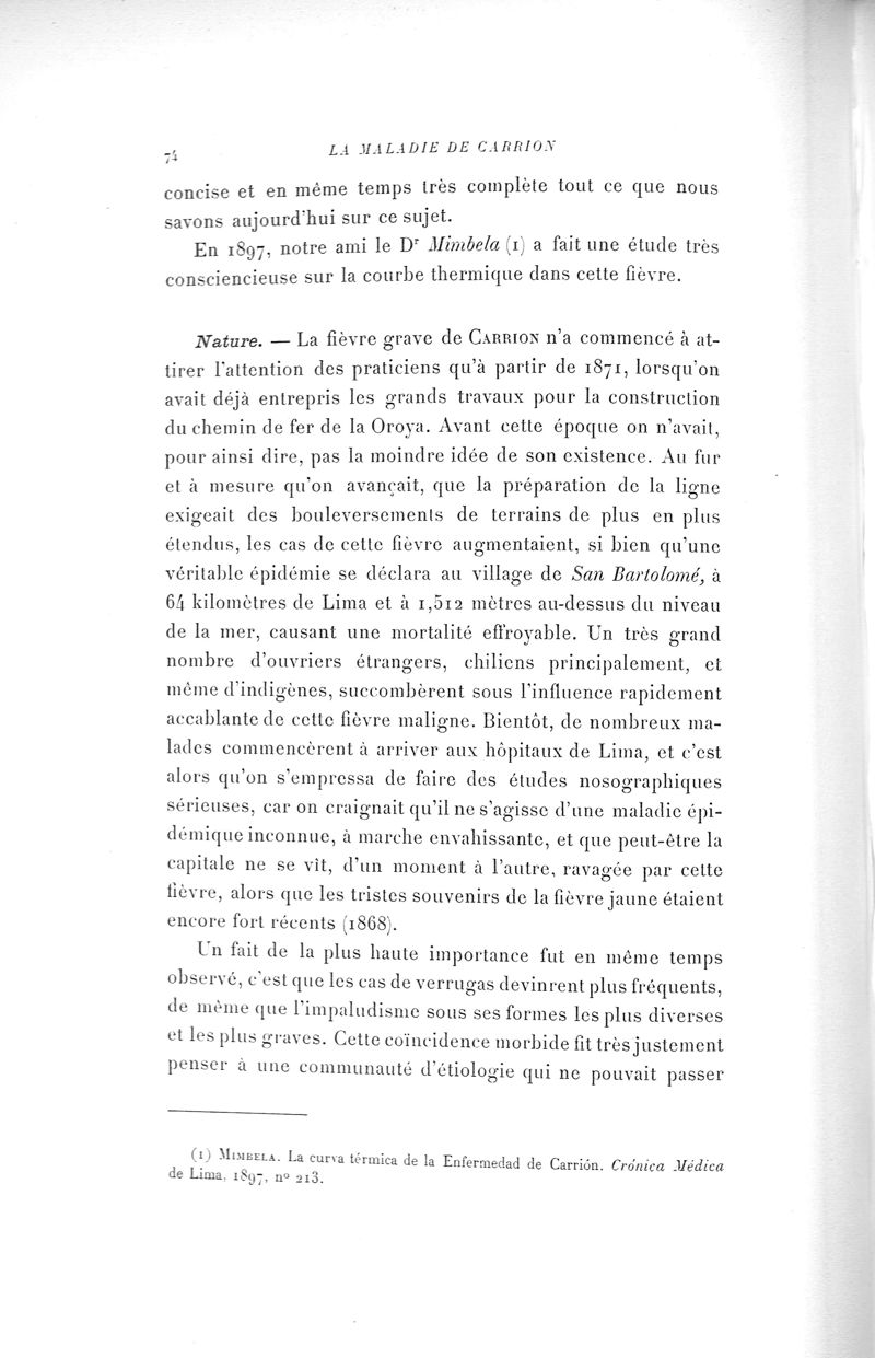 La Maladie de Carrion, ou la Verruga péruvienne