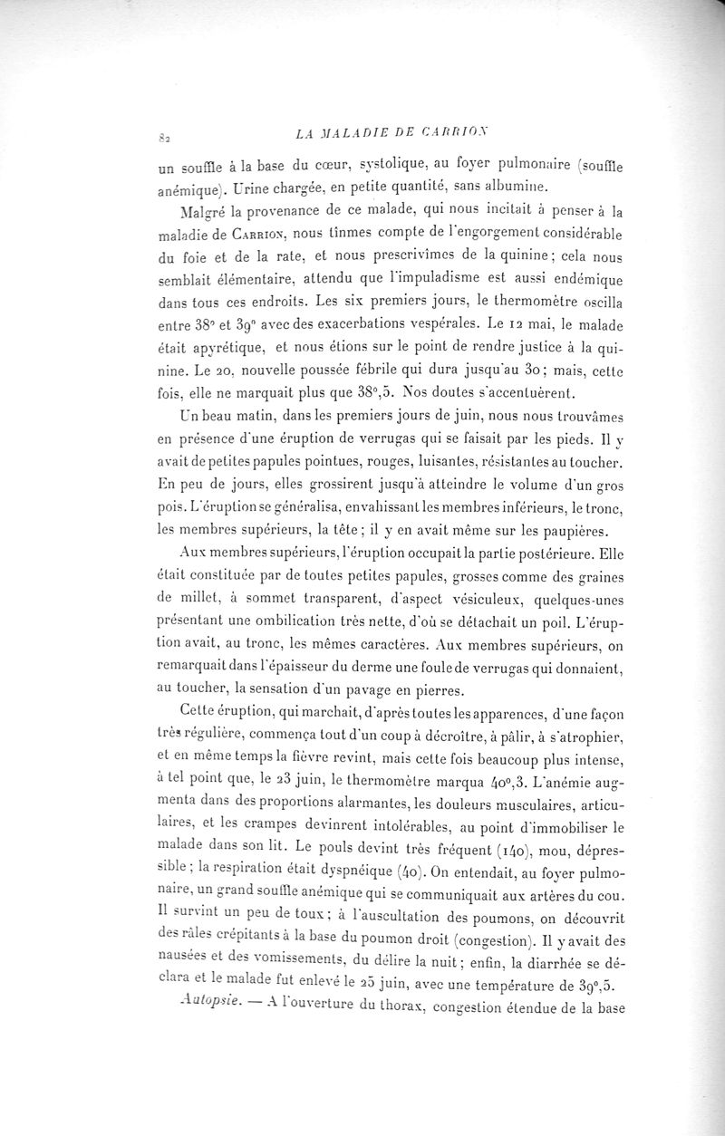 La Maladie de Carrion, ou la Verruga péruvienne