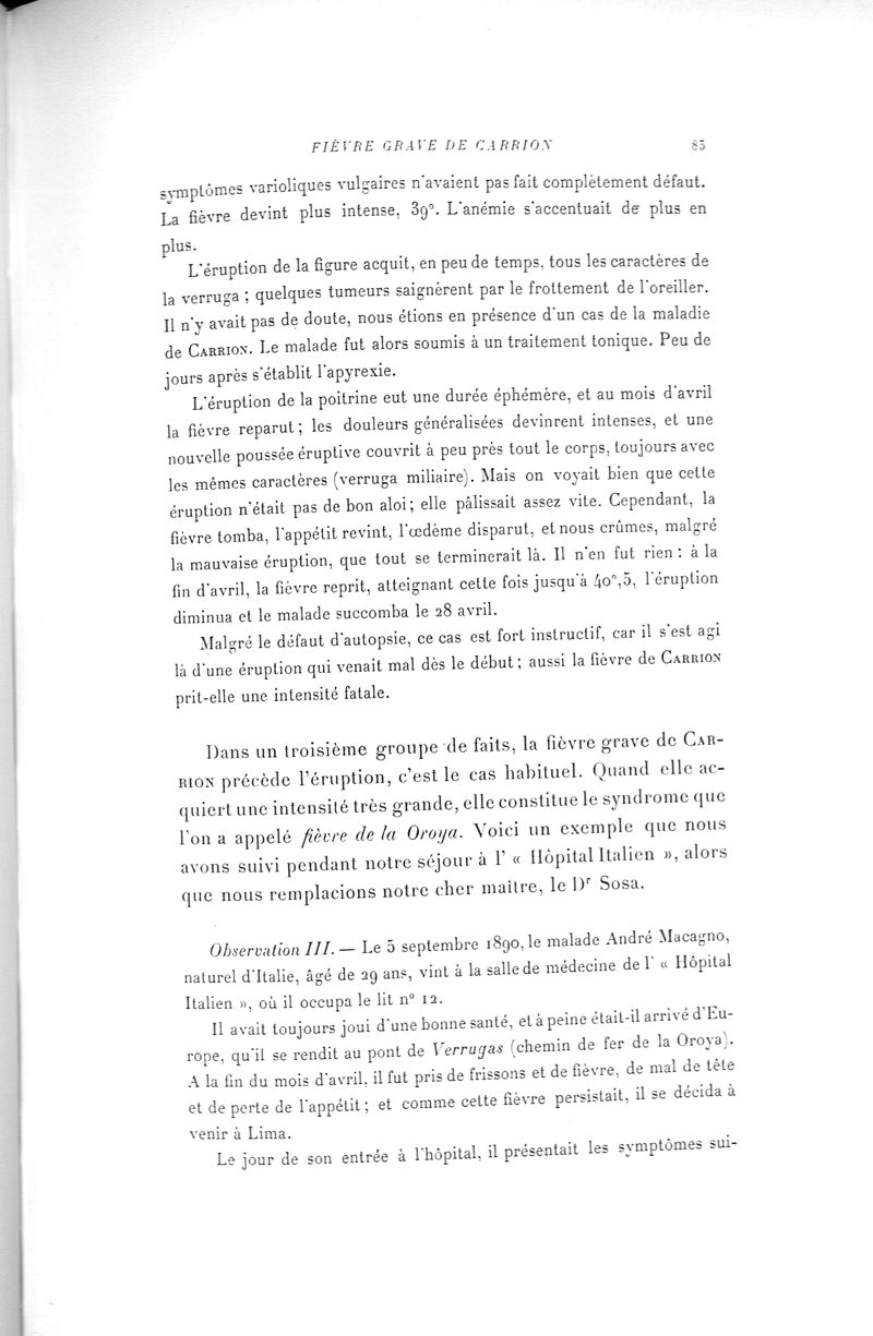 La Maladie de Carrion, ou la Verruga péruvienne