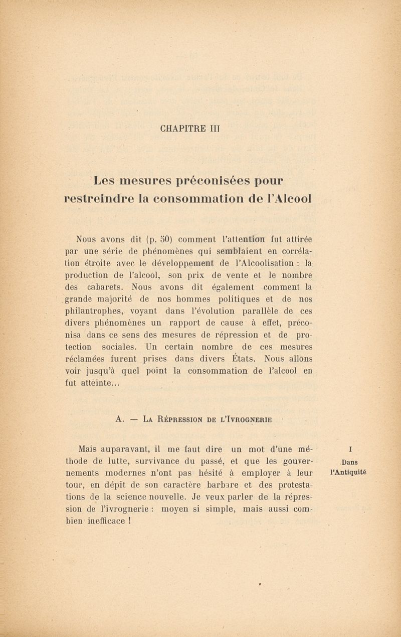 De l'alcoolisation : effets, causes, remèdes étude de pathologie sociale