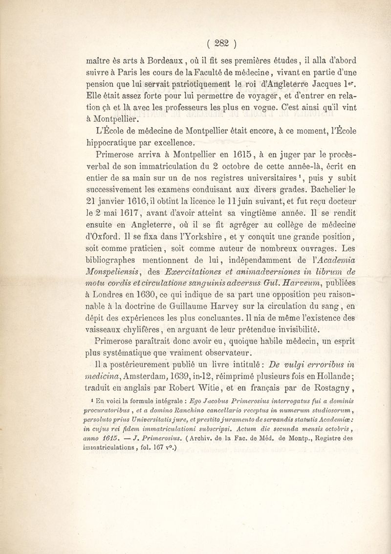 Jacques Primerose : historien de l'Ecole de médecine de Montpellier