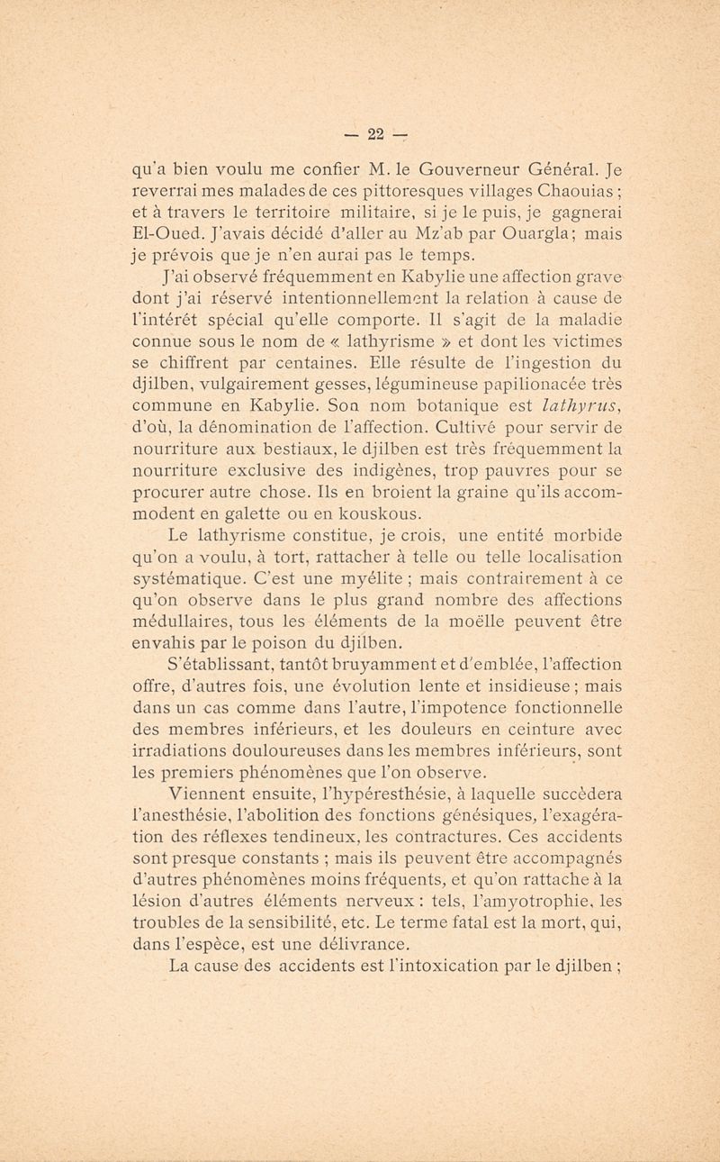 Notes de voyage et rapport à M. le gouverneur général d'une mission médicale chez les indigénes de l'Algérie 1896