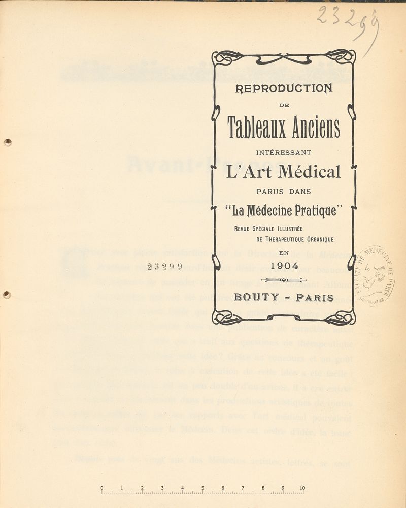 Reproduction de tableaux anciens intéressant l'art médical parus dans "la Médecine pratique" revue spéciale illustrée de thérapeutique organique en 1904