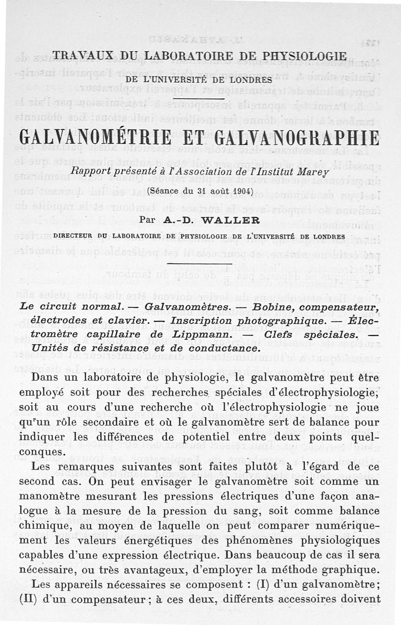 Travaux de l'Association de l'Institut Marey, par MM. Chauveau, Kronecker, Athanasiu, Waller, Errera