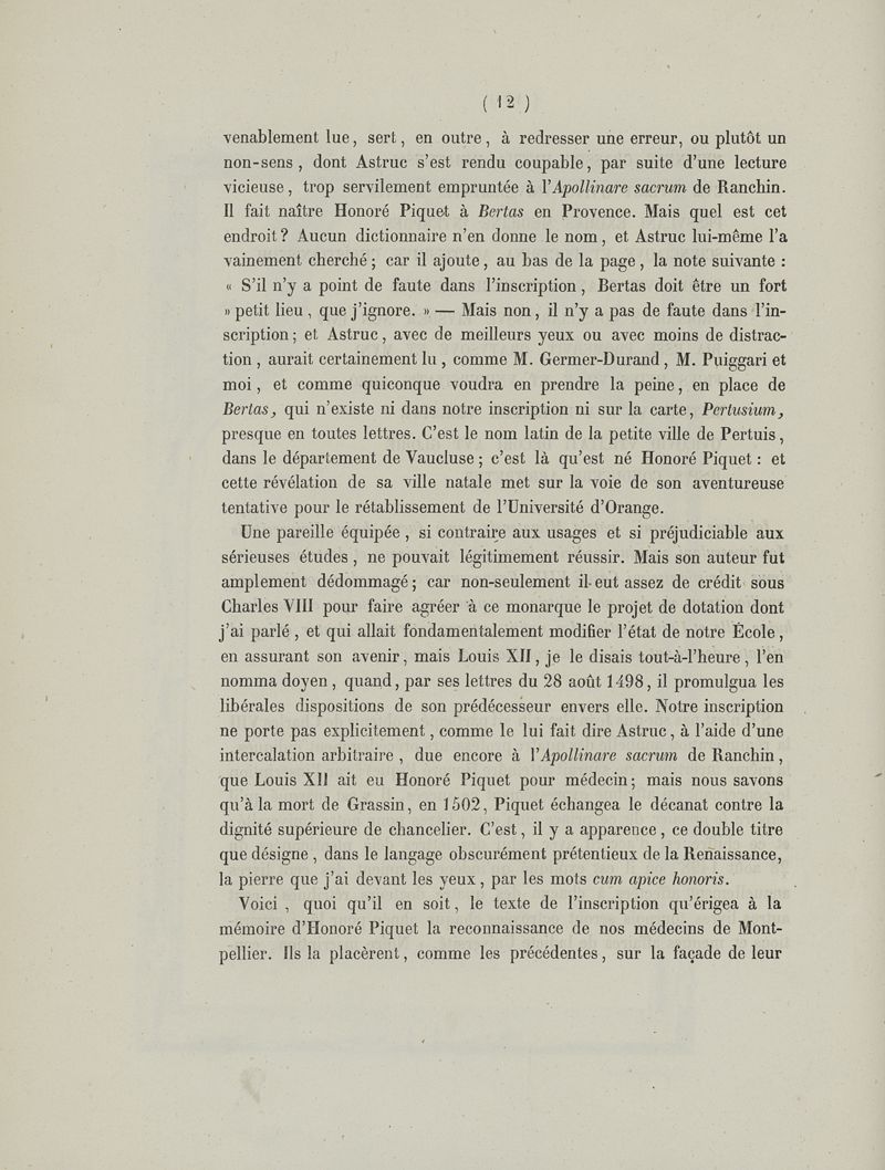 Les inscriptions de l'ancienne université de médecine de Montpellier restituées d'après les pierres originales encore existantes