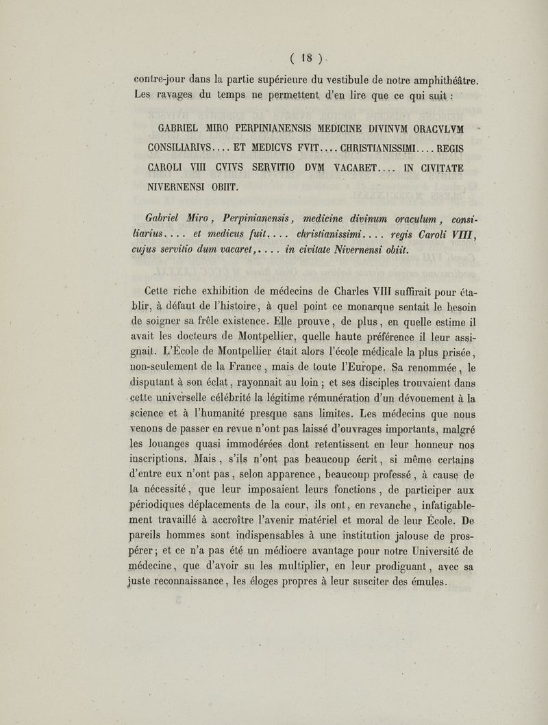 Les inscriptions de l'ancienne université de médecine de Montpellier restituées d'après les pierres originales encore existantes