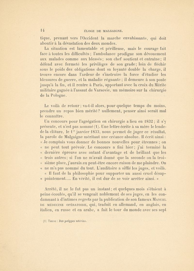 Malgaigne - Eloge prononcé à l'Académie de médecine dans la Séance annuelle du 15 décembre 1903