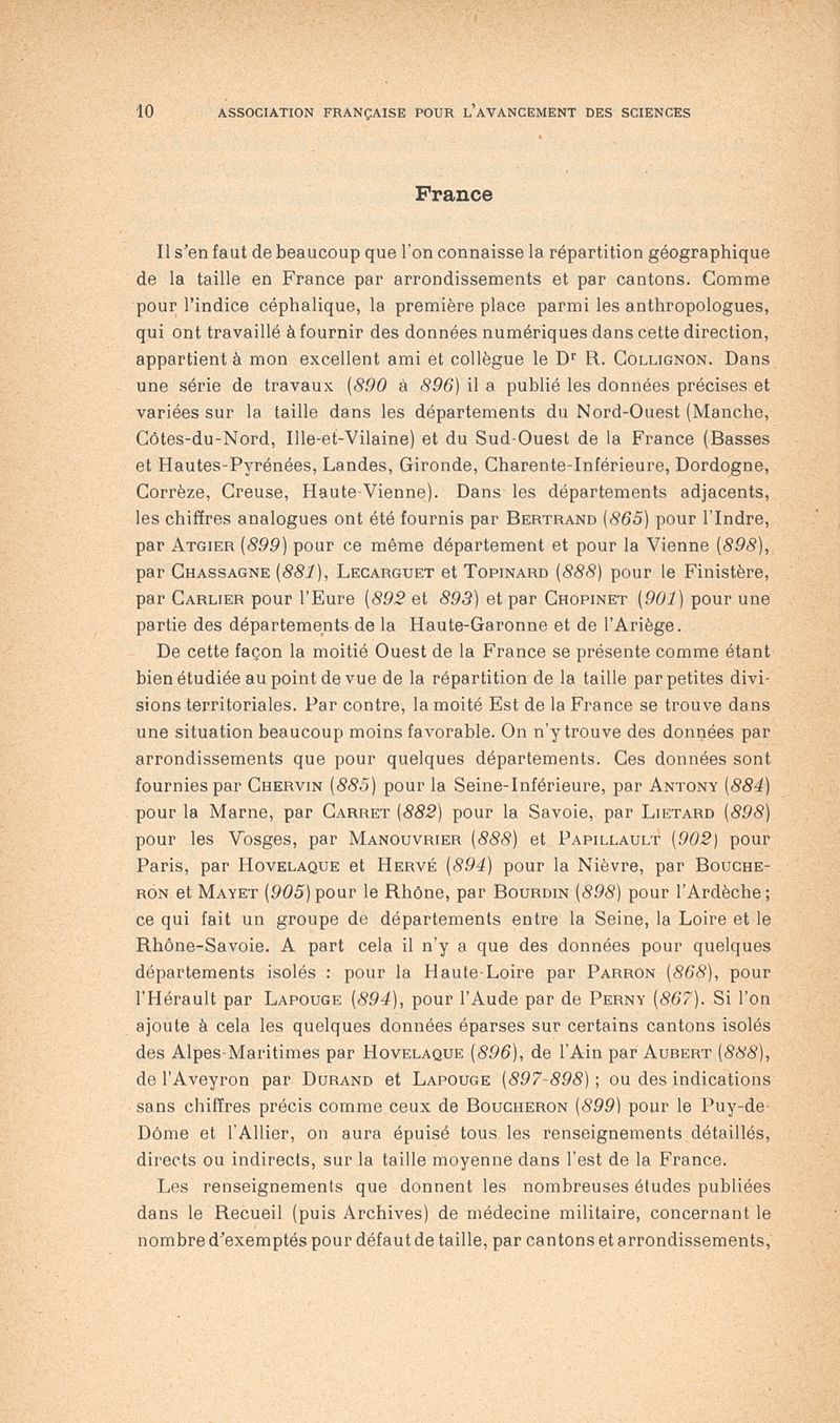 Deniker, Joseph / Association française pour l'avancement des sciences.