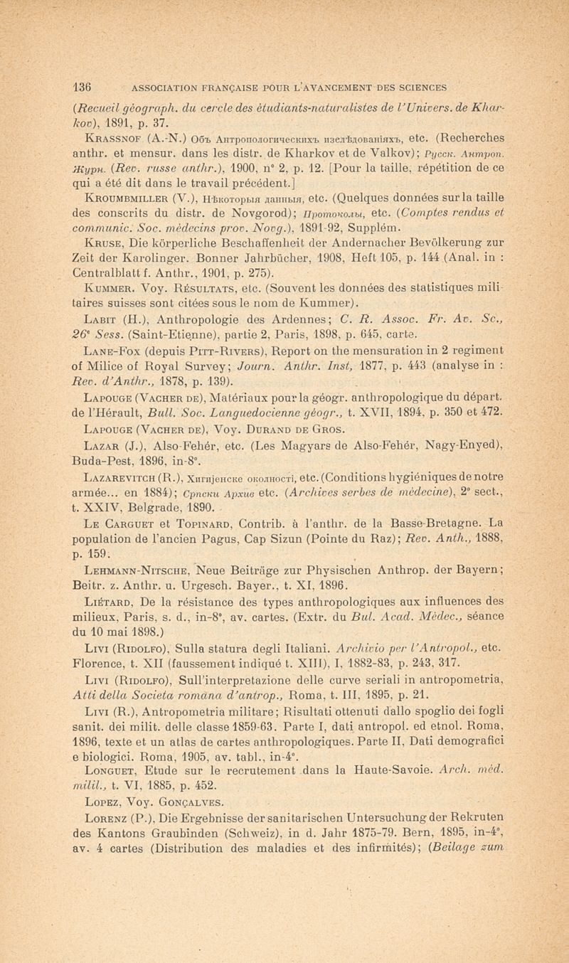 Deniker, Joseph / Association française pour l'avancement des sciences.