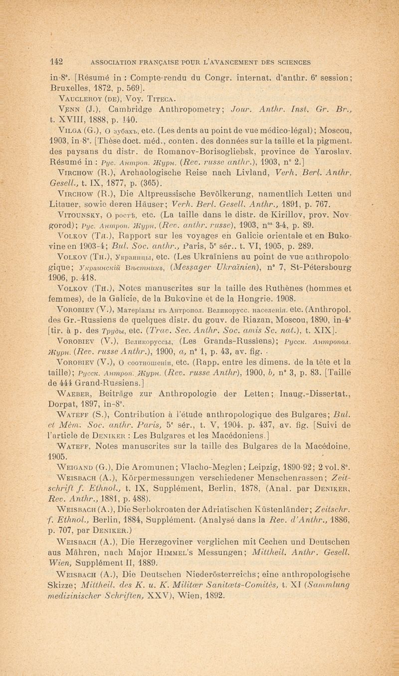 Deniker, Joseph / Association française pour l'avancement des sciences.