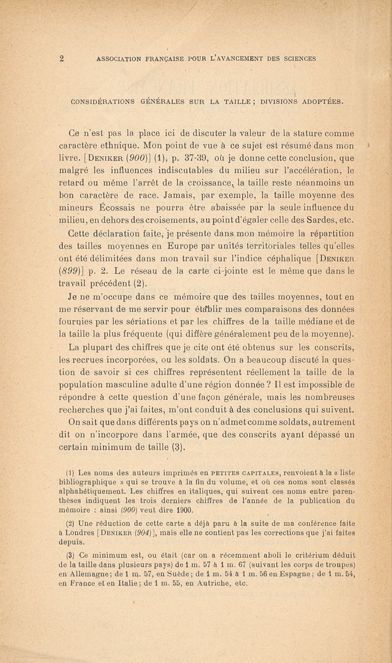 Deniker, Joseph / Association française pour l'avancement des sciences.