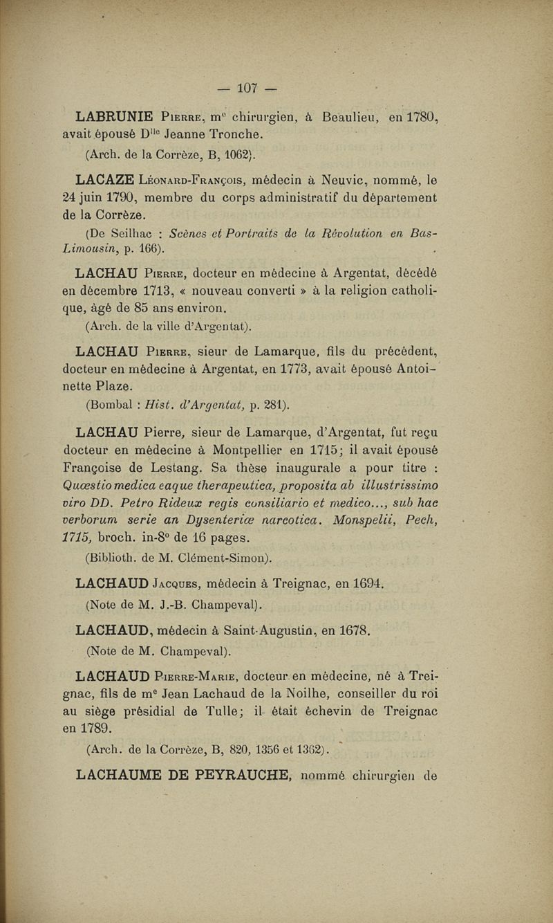 Dictionnaire des médecins du Limousin (Corrèze et Haute-Vienne) jusqu'à la fin du XVIIIIe siècle