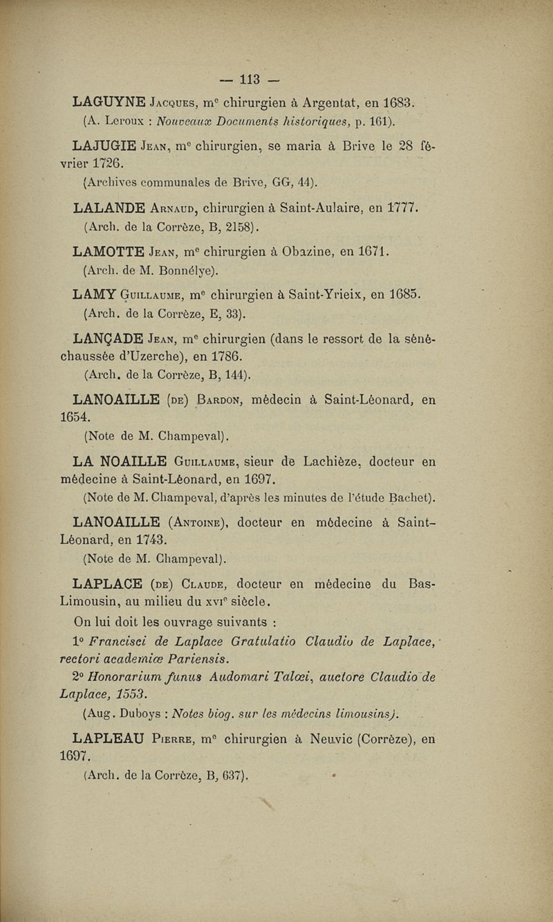 Dictionnaire des médecins du Limousin (Corrèze et Haute-Vienne) jusqu'à la fin du XVIIIIe siècle