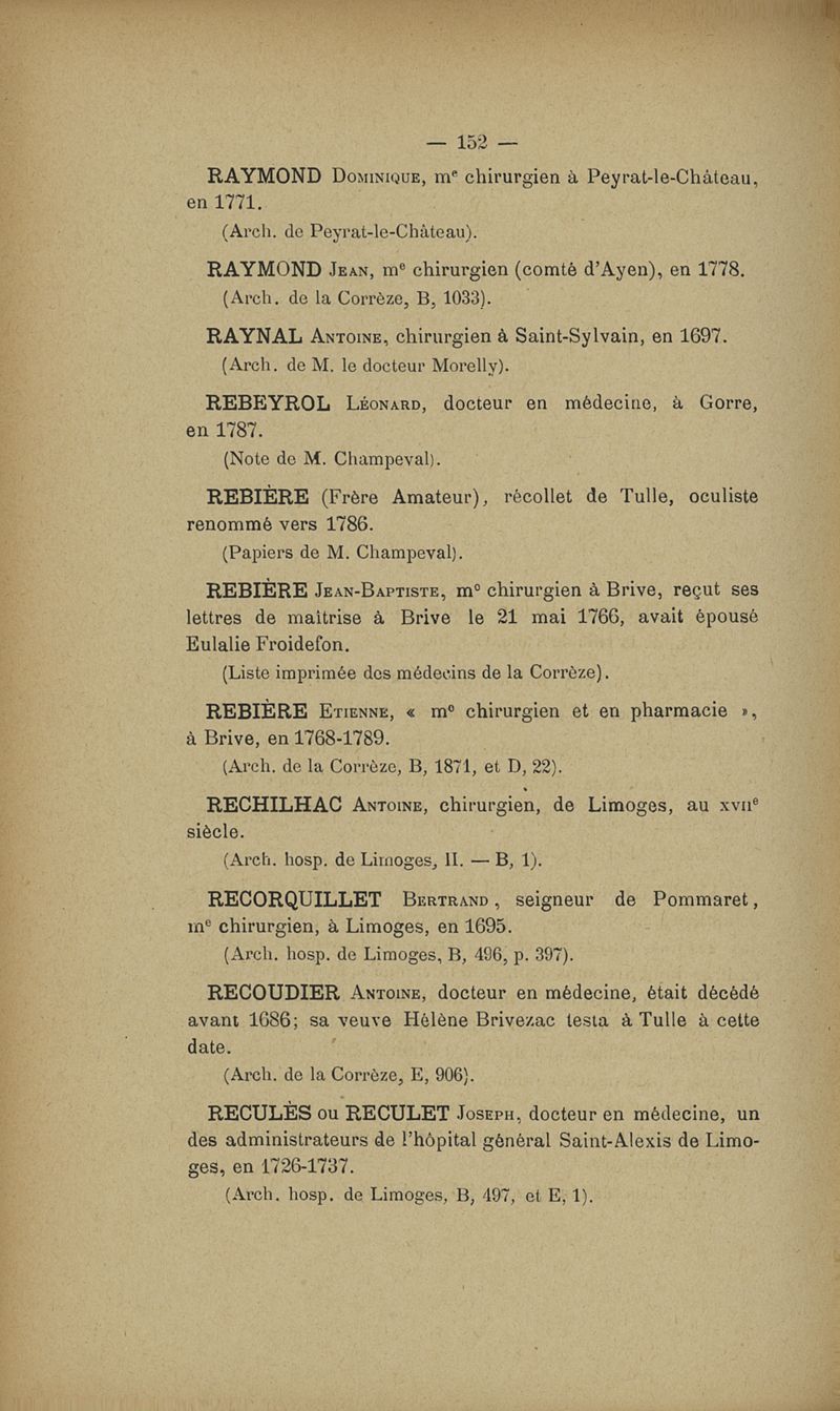Dictionnaire des médecins du Limousin (Corrèze et Haute-Vienne) jusqu'à la fin du XVIIIIe siècle