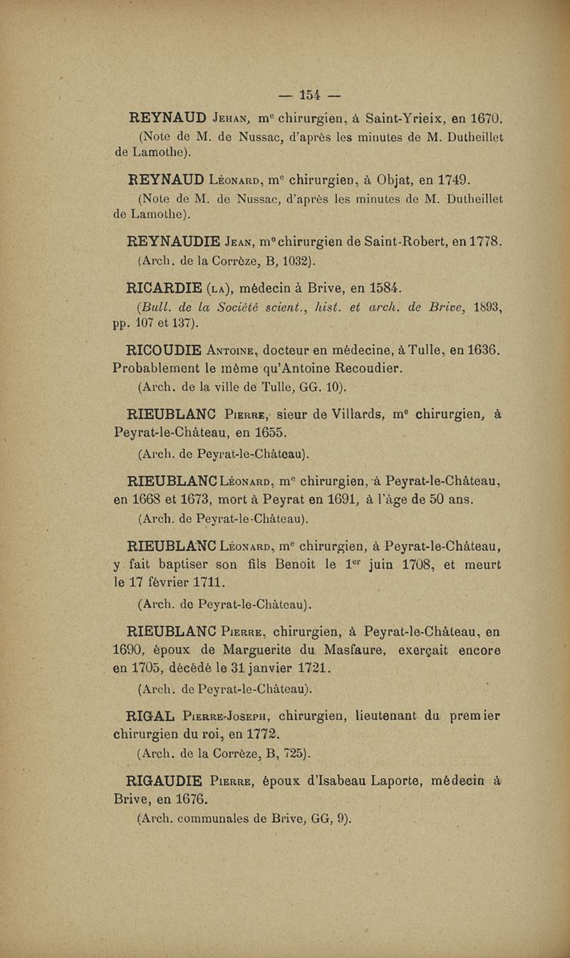 Dictionnaire des médecins du Limousin (Corrèze et Haute-Vienne) jusqu'à la fin du XVIIIIe siècle