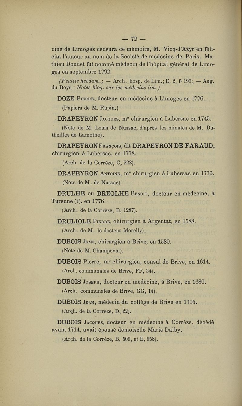 Dictionnaire des médecins du Limousin (Corrèze et Haute-Vienne) jusqu'à la fin du XVIIIIe siècle
