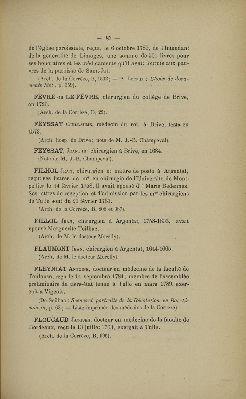 Dictionnaire des médecins du Limousin (Corrèze et Haute-Vienne) jusqu'à la fin du XVIIIIe siècle