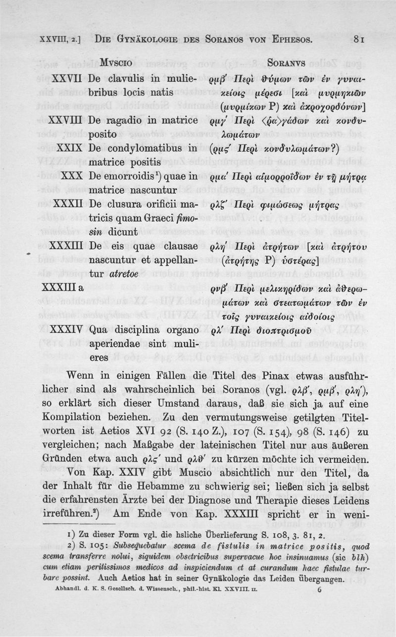 Die Uberlieferung der Gynäkologie des Soranos von Ephesos
