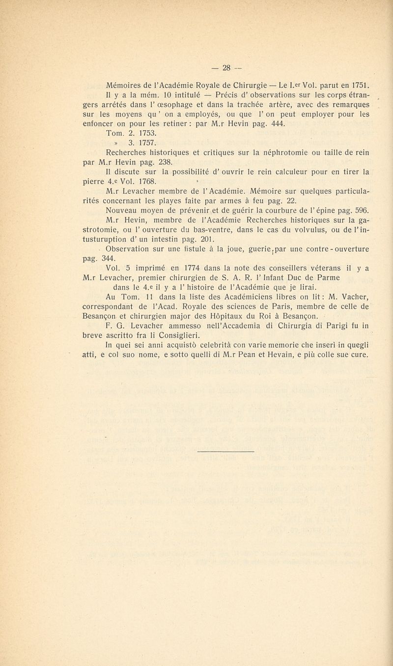 Memorie lettere e documenti per servire alla biografia del chirurgo F.G. Levacher, 1732-1816