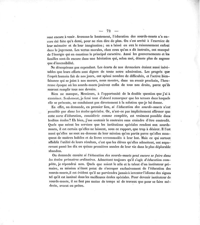 Mémoire sur les travaux de M. Piroux : pour faire commencer l'éducation et l'instruction des enfants sourds-muets dans les familles et dans les écoles primaires ; accompagné de pièces justificatives ou données nancéiennes pour la solution des questions soumises à MM. les recteurs d'Académie par le ministre de l'Instruction publique dans sa circulaire du 28 octobre 1863