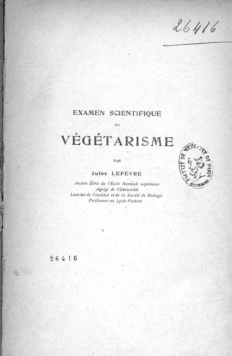 [Paris, Société végétarienne de France], 1919.