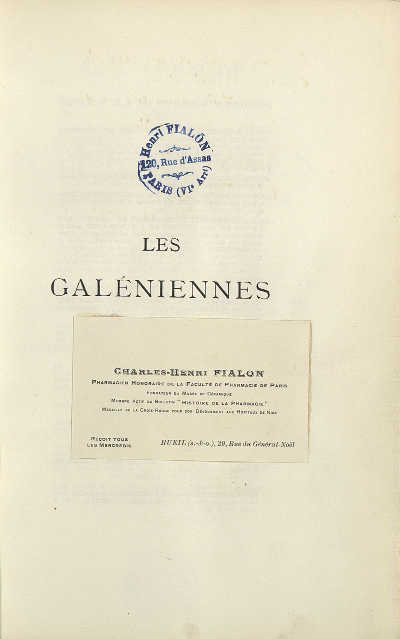 Les Galéniennes : fantaisies rimées en marge du Codex : suivies de quelques autres poèmes ; préface du Dr. François Helme