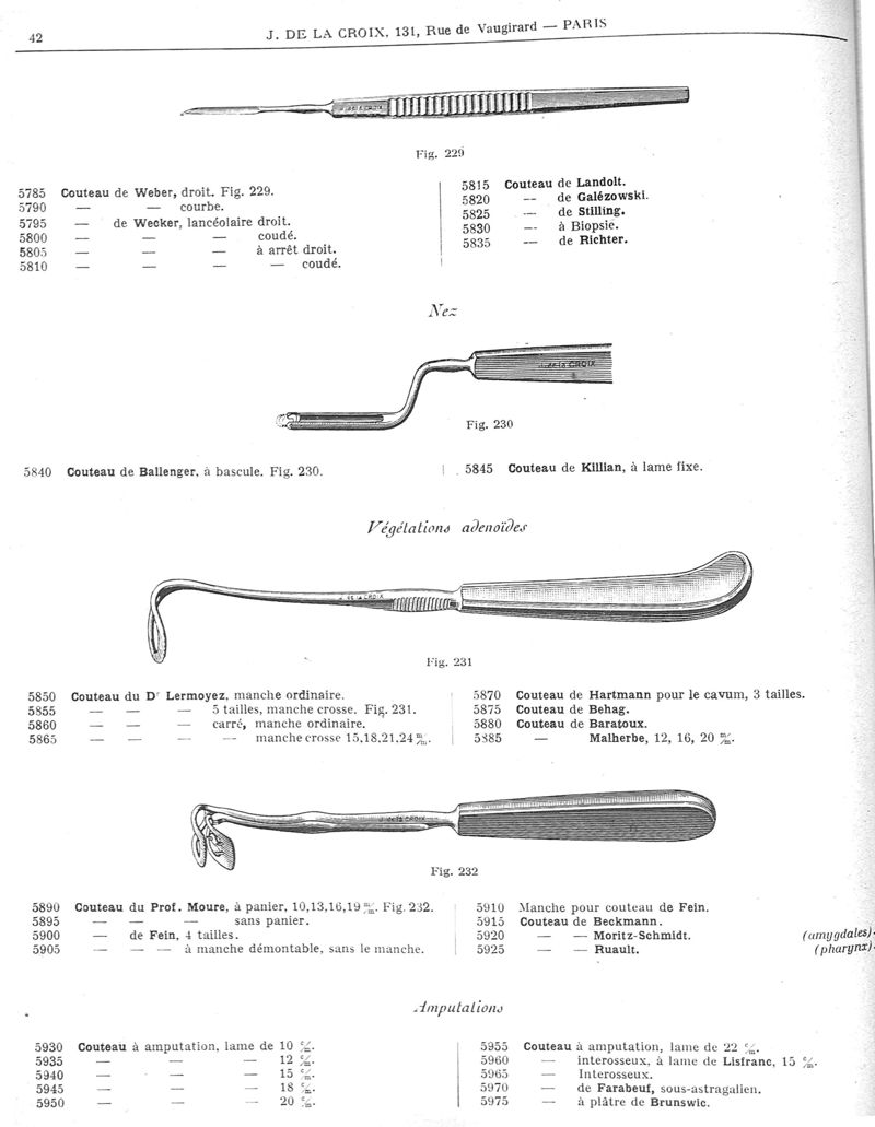 Catalogue général d'instruments de chirurgie [chirurgie, médecine, accessoires de pharmacie] Maison J. de la Croix [ancienne maison A. Le Carpentier]