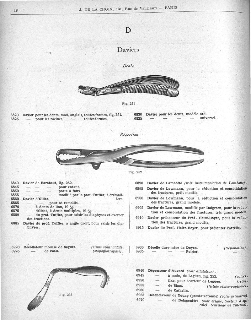 Catalogue général d'instruments de chirurgie [chirurgie, médecine, accessoires de pharmacie] Maison J. de la Croix [ancienne maison A. Le Carpentier]
