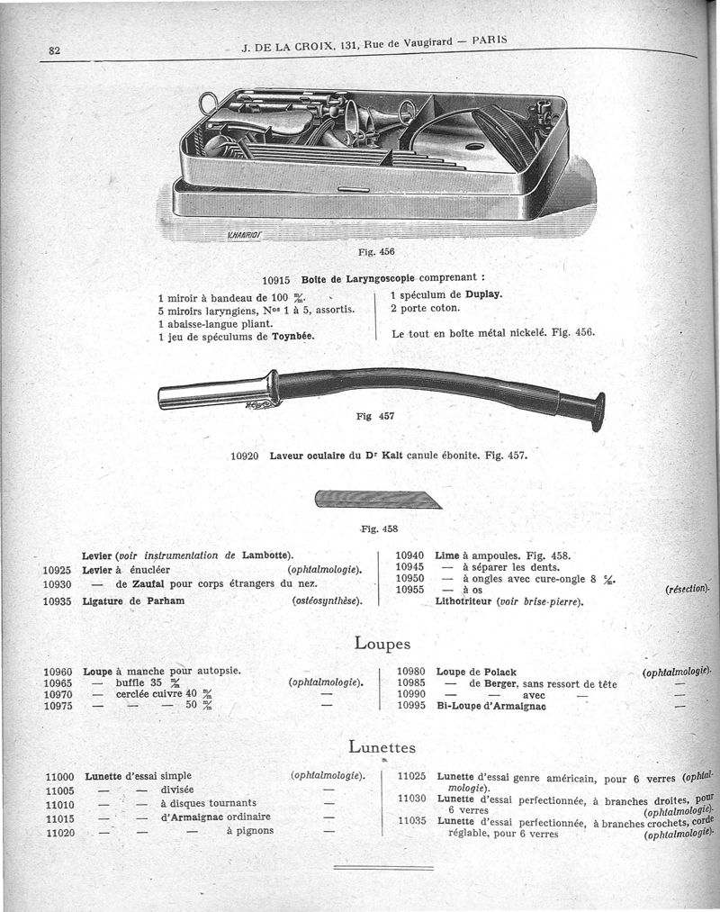 Catalogue général d'instruments de chirurgie [chirurgie, médecine, accessoires de pharmacie] Maison J. de la Croix [ancienne maison A. Le Carpentier]