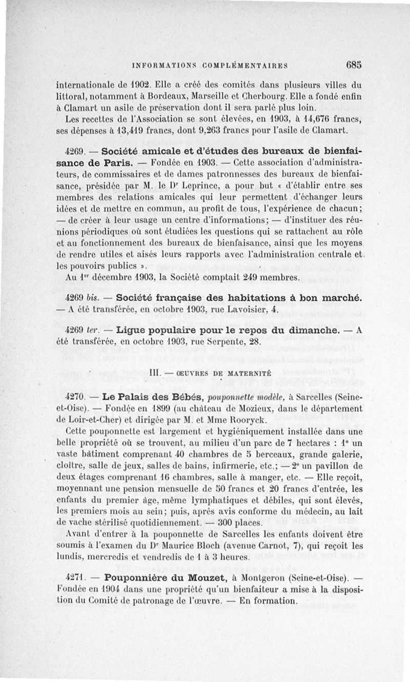 Paris charitable et prévoyant. Tableau des oeuvres et institutions du département de la Seine. Publié par les soins de l'office central des oeuvres de bienfaisance... Supplément