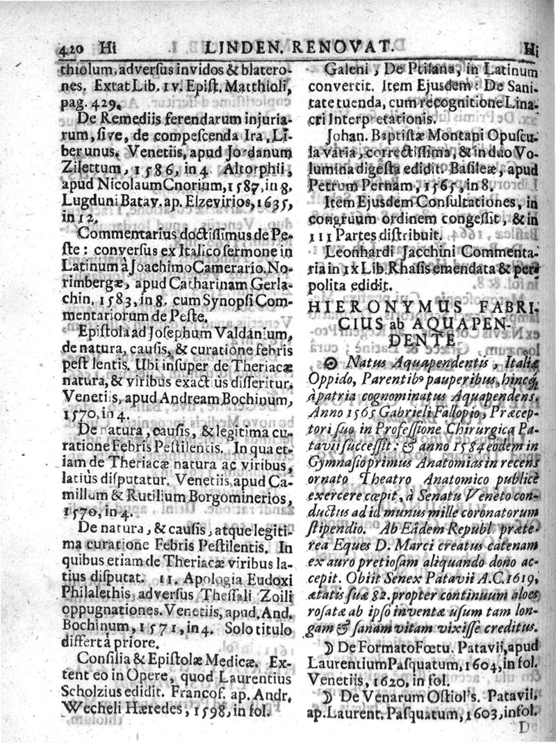 Lindenius renovatus sive Johannis Antonidae Van der Linden De Scriptis Medicis libri duo