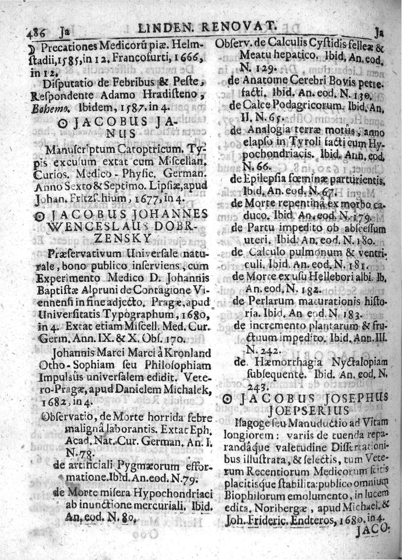 Lindenius renovatus sive Johannis Antonidae Van der Linden De Scriptis Medicis libri duo