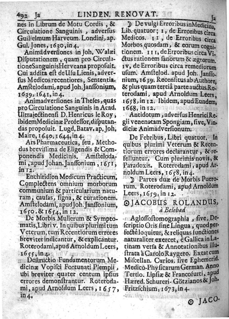 Lindenius renovatus sive Johannis Antonidae Van der Linden De Scriptis Medicis libri duo