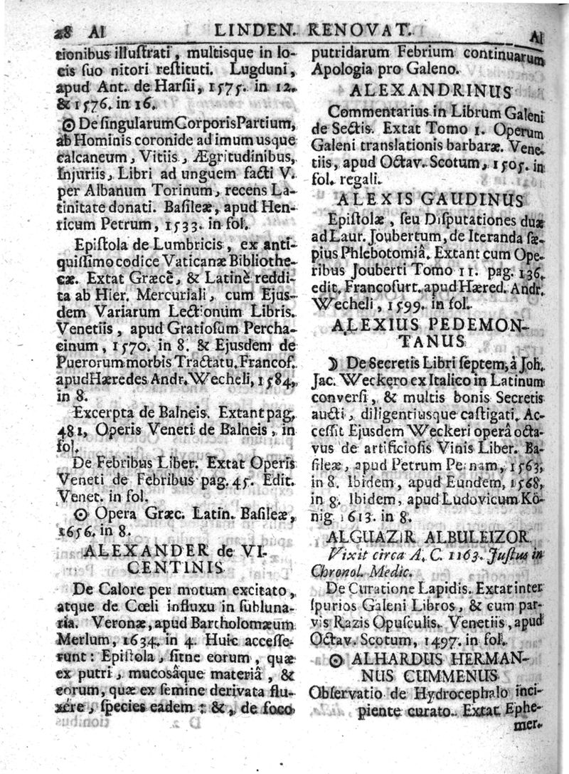 Lindenius renovatus sive Johannis Antonidae Van der Linden De Scriptis Medicis libri duo